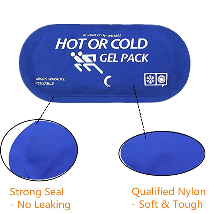 Reusable Ice Pack: Componitur ex duobus laminis textilibus materiarum non contextarum, quae componuntur cum formula secreta commercii, compressa in modum specialem crucis connexum, polyacrylicum polyolum polymericum refrigerantem. Intrinsecus duo strata plastica clavis una arte parvarum perforationum uno modo utuntur, quae tabulatum plasticum ad craticulam ligat, ut novum exemplar in translatione tempestatum pessimam sustinere possit.